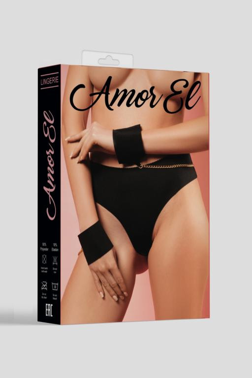 Металлическое кольцо соединяет трусики с наручниками. Наручники манжеты выполнены в едином стиле с трусиками