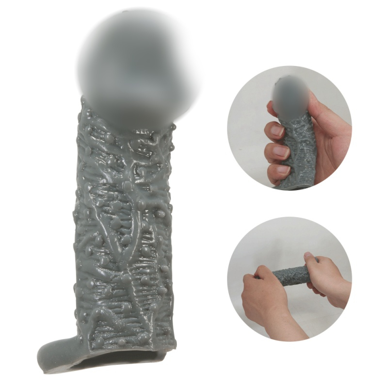 Выполнена насадка из материала TPR (термопластичная резина) в сером цвете. По тактильным ощущениям эластичная, нежная. Не натирает и не передавливает половой член
